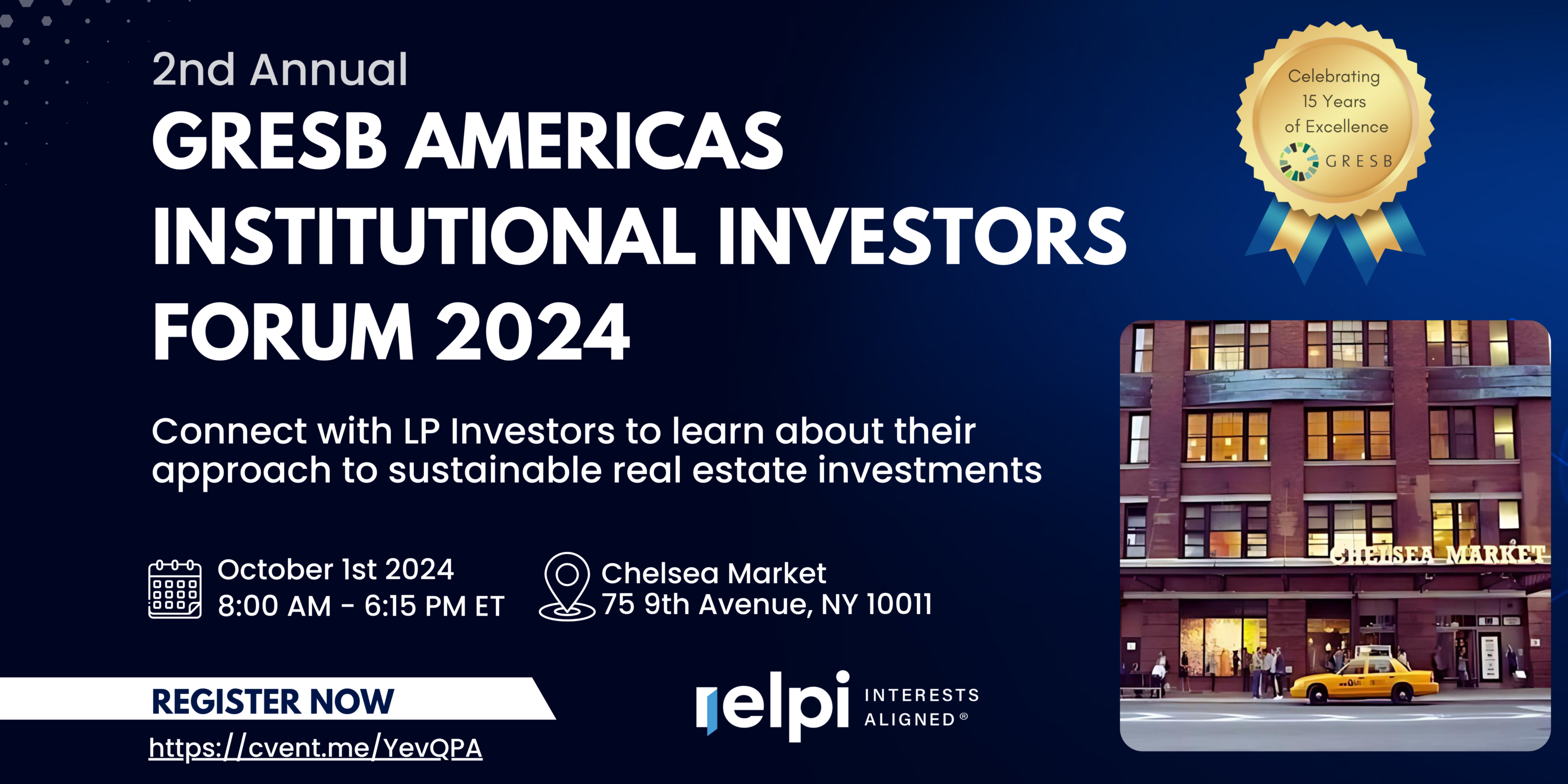 The Real Estate Limited Partner Institute (RELPI) will partner again with GRESB to host a day-long conference on best practices in real estate investment. The conference will take place on October 1, 2024 at Chelsea Market in New York City.