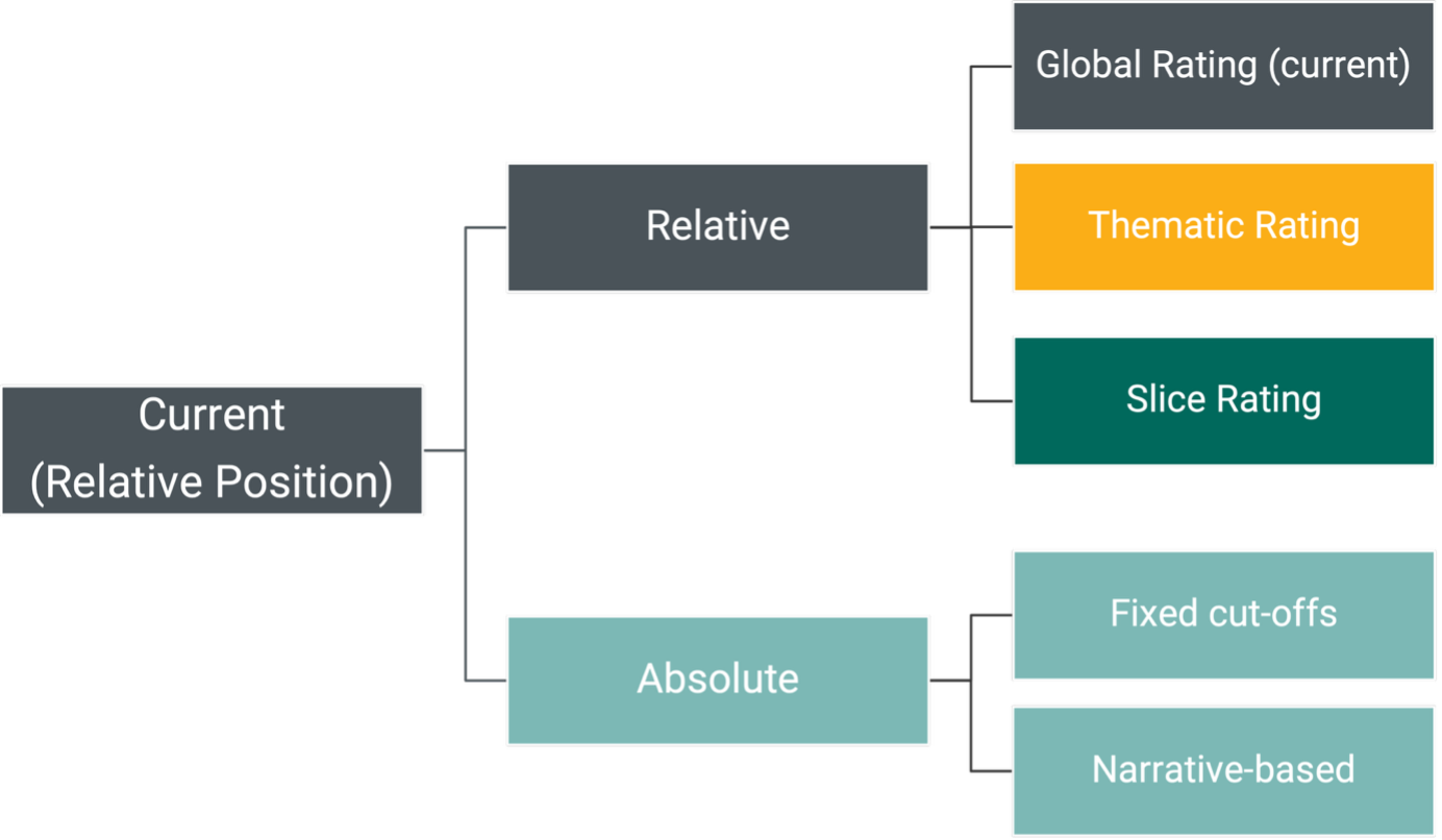 3. Absolute Thresholds: Narrative-based or fixed cutoffs for scores to create more predictable and stable ratings that can evolve over time.