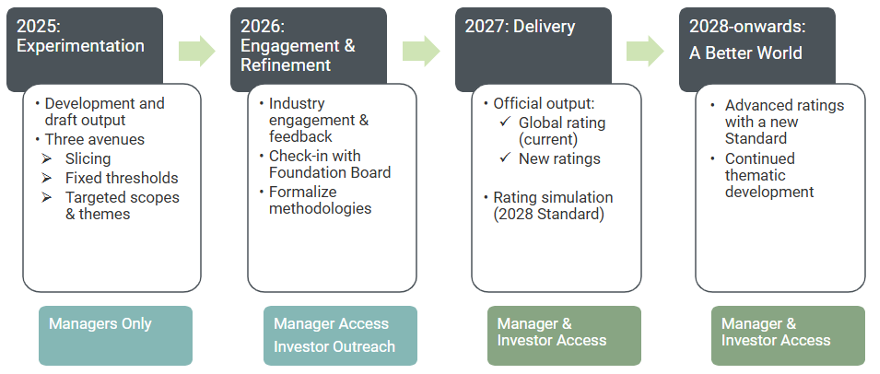 The figure below presents a proposed roadmap for implementing multiple simultaneous ratings in GRESB. More information on the roadmap can be found in the accompanying report.