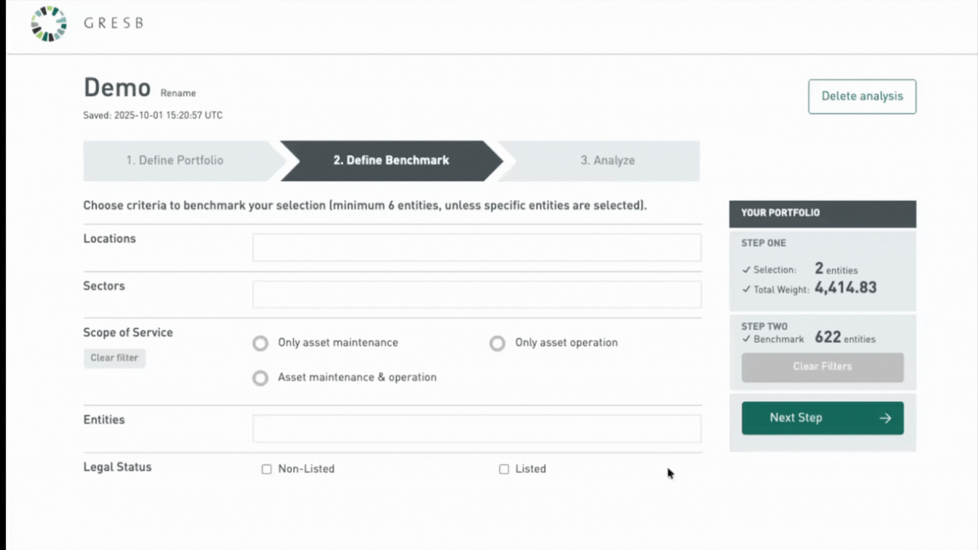 Once the Benchmark is defined, click NEXT STEP to access your analysis.