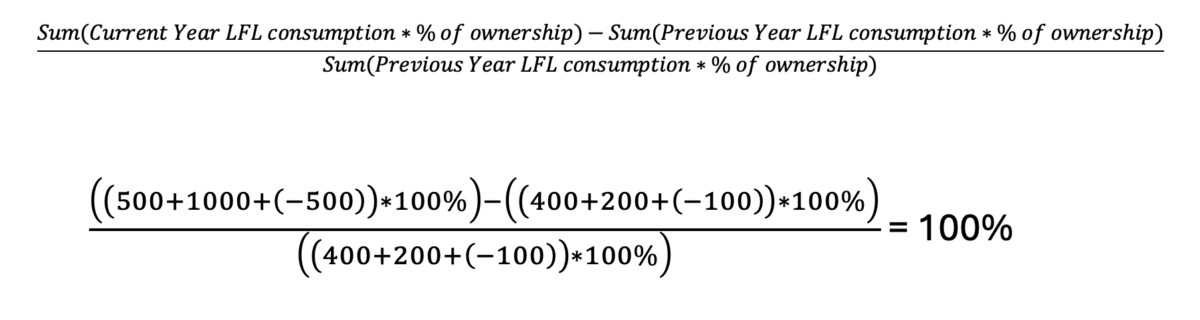 2025 change: The Like-for-Like (LFL) % change in the Portfolio Impact section is now based on total LFL consumption change, aligned with the Benchmark Report methodology. Please see below for an example.