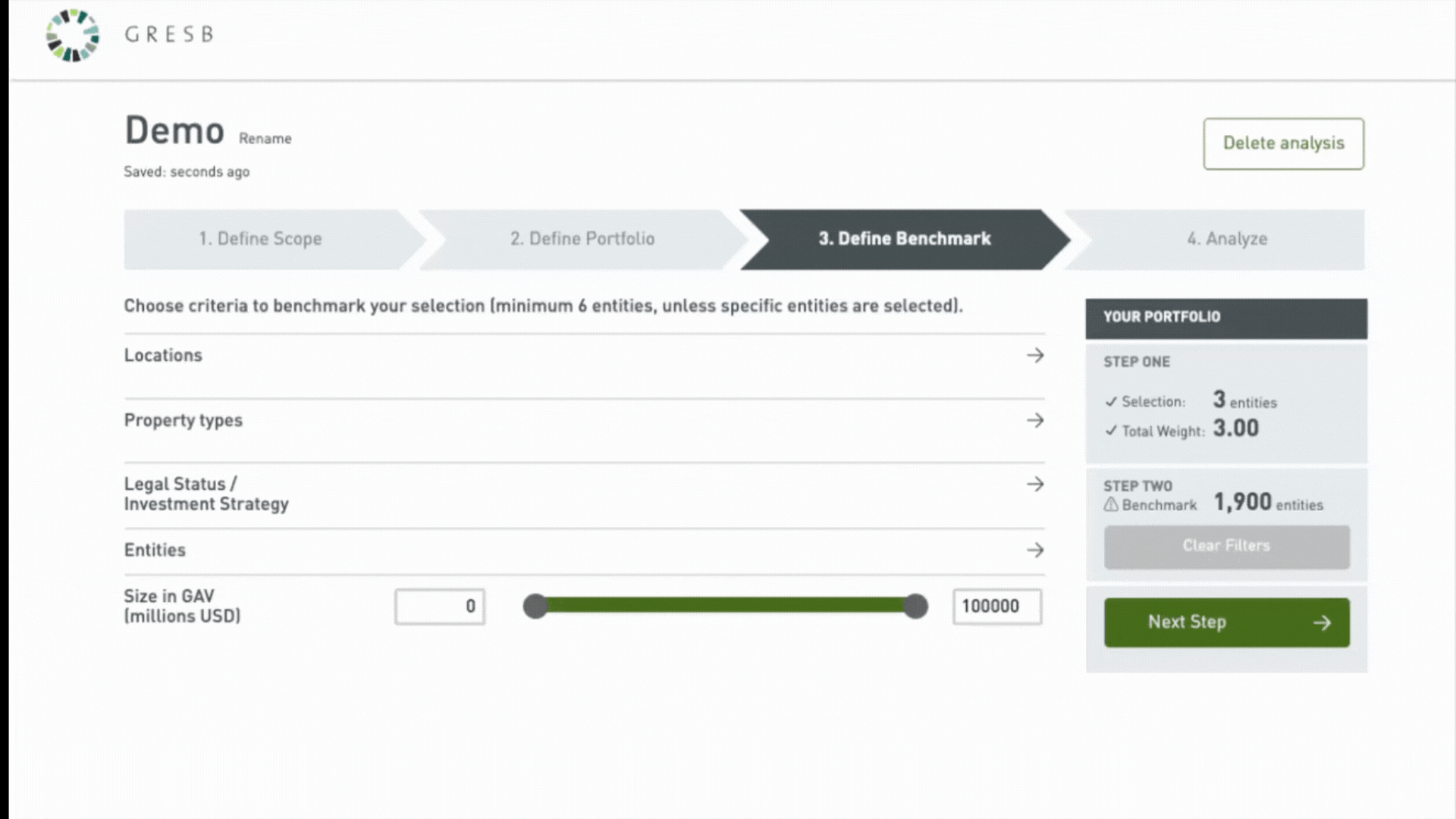 Once the Benchmark is defined, click NEXT STEP to access your analysis.