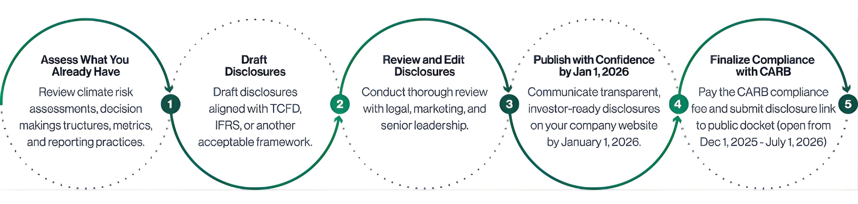 - Draft financial risk disclosures aligned with CARB’s checklist, saving time for internal review and benchmarking against peers if possible.